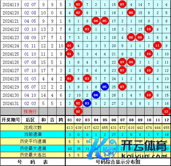 大乐透积年同时第132期后区余数奇偶比为18:14,最近5年余数奇偶比为4:6,后区余数大小比为10:22,最近5年余数大小比为3:7,本期后区看重号码02、04、08、09、12,后区两码关怀02、12。