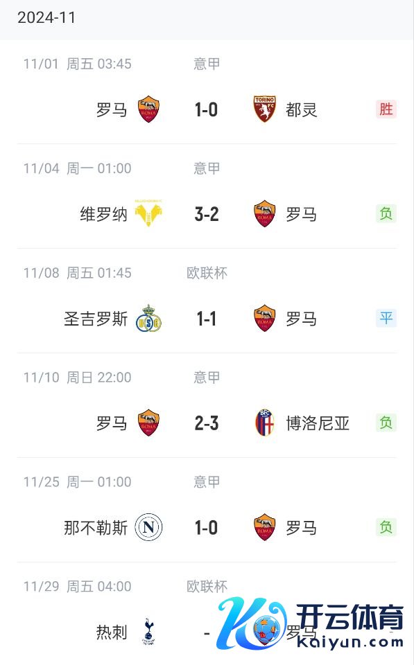 11月25日讯 意甲第13轮,罗马0-1不敌那不勒斯,遭受意甲三连败。
