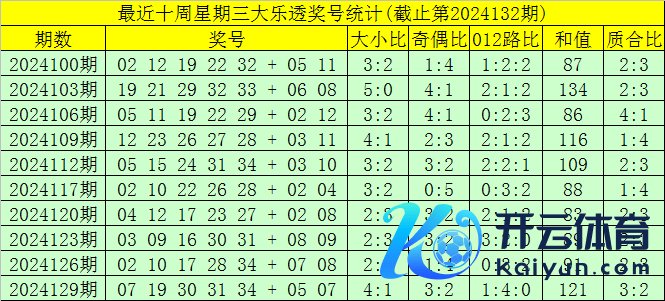 第2024132期大透乐星期三奖号分析: